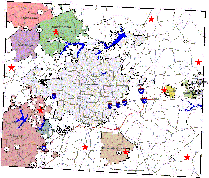 A Groundwater monitoring network has been established since 2002 for long-term monitoring of the groundwater table changes in Guilford County. The location of the wells can be viewed in the county map.