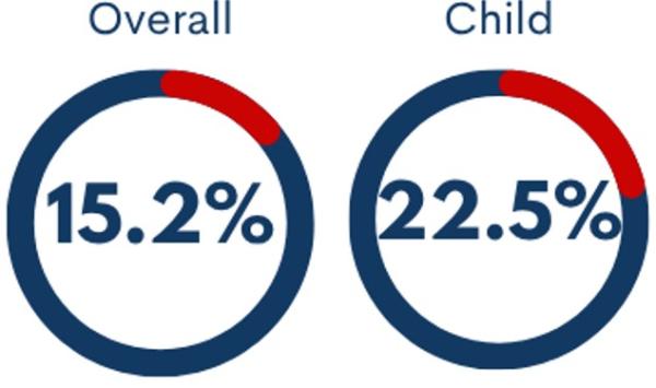 As of 2023, the overall food insecurity rate in Guilford County is 15.2%, while the child food insecurity rate is 22.5%.